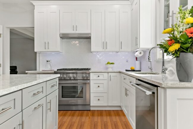 Stony Brook Kitchen This kitchen went from dark brown everywhere to bright white and gray with a sparkly countertop. Kitchen Portfolio