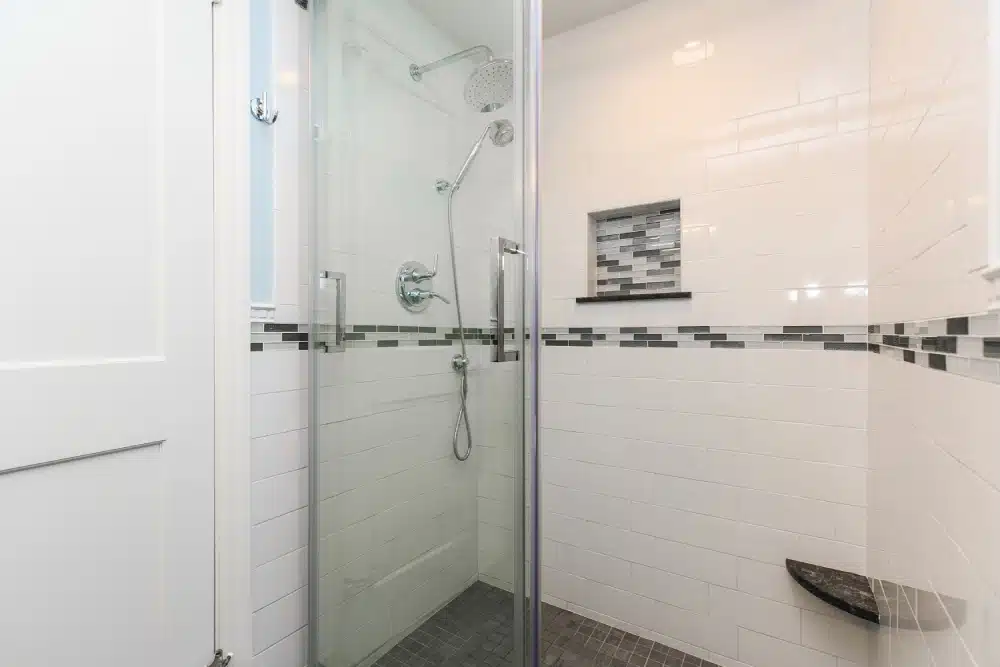 Removing an in wall hamper allowed for deeper soaking tub with privacy for toilet and larger vanity. Taking space from an external shed expanded a powder room to a full bath with luxury shower